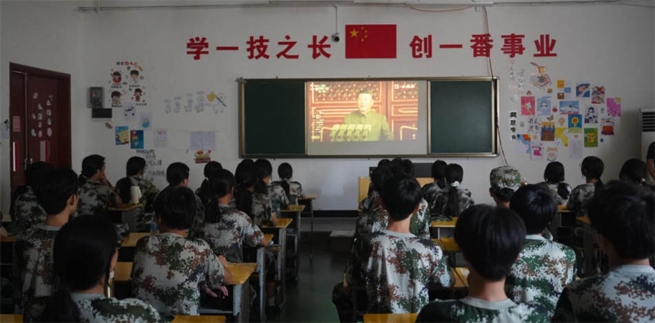 活動(dòng)引發(fā)強(qiáng)烈反響。當(dāng)看到抗戰(zhàn)老兵胸前的勛章在陽(yáng)光下閃耀,師生們深刻體會(huì)到“今日和平”四個(gè)字的千鈞之重。無(wú)人機(jī)操控與維修專(zhuān)業(yè)的同學(xué)感慨道:“裝備方隊(duì)中的無(wú)人機(jī)作戰(zhàn)集群讓我看到科技報(bào)國(guó)的路徑,我決心學(xué)好專(zhuān)業(yè)技能,成為新時(shí)代的‘丁輝’。”這種從歷史觀照現(xiàn)實(shí)、以技能錨定未來(lái)的共鳴,正是此次觀禮最深遠(yuǎn)的教育意義。