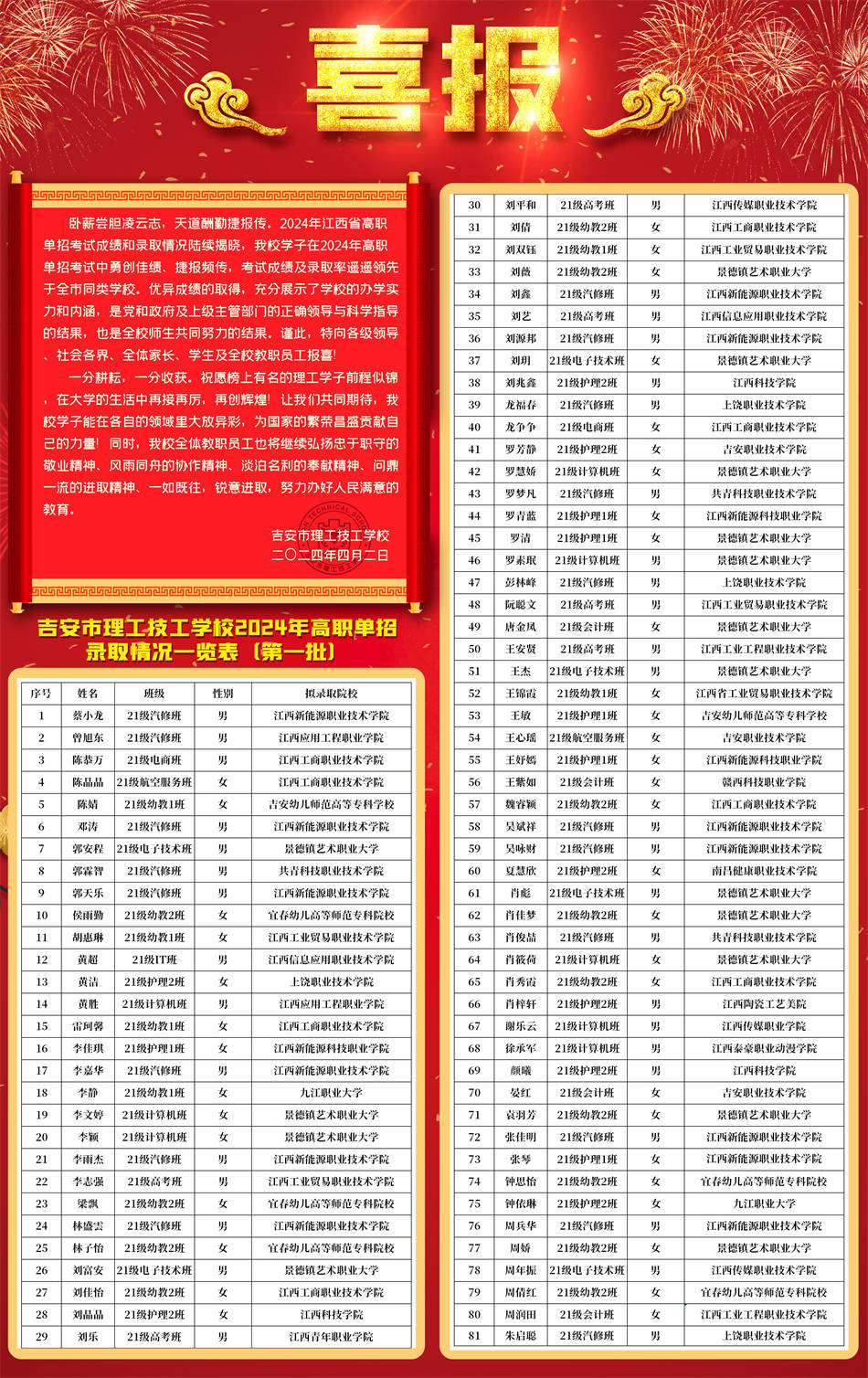 【喜報(bào)】熱烈祝賀吉安市理工技工學(xué)校2025年高